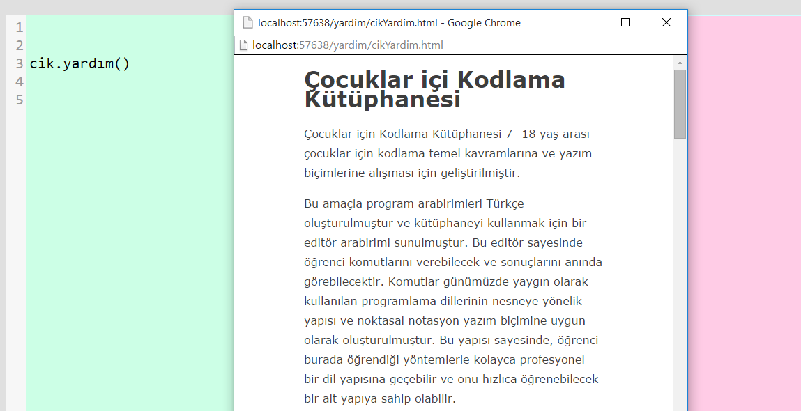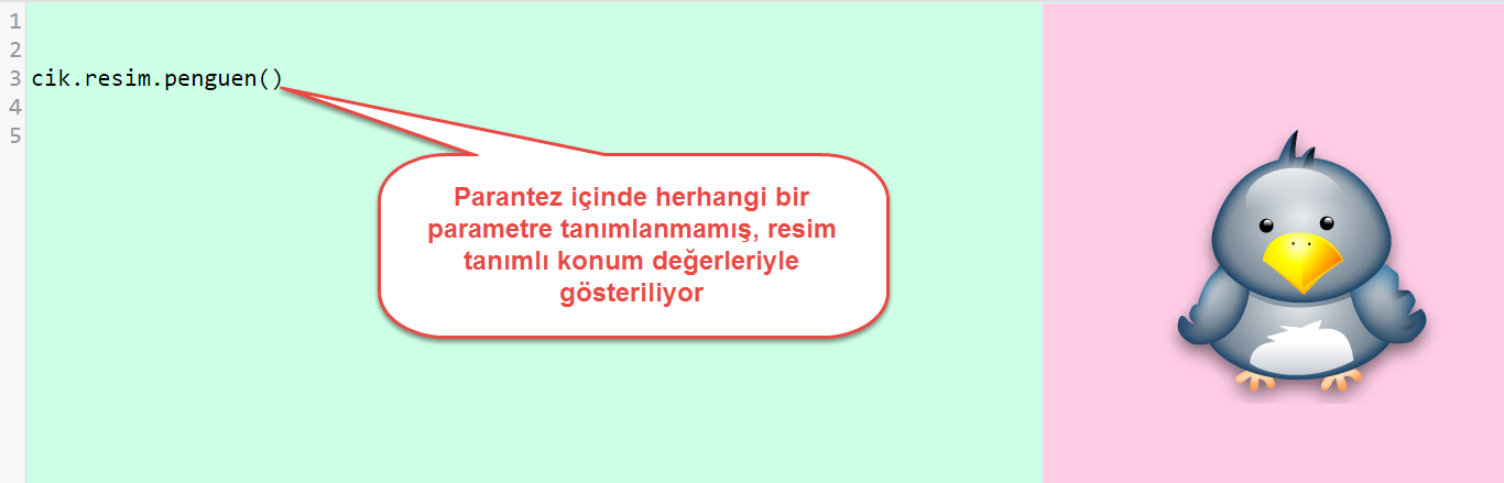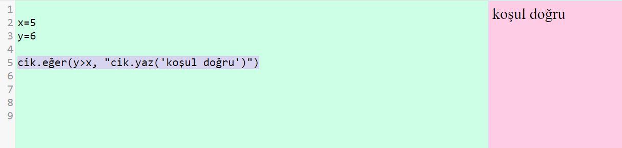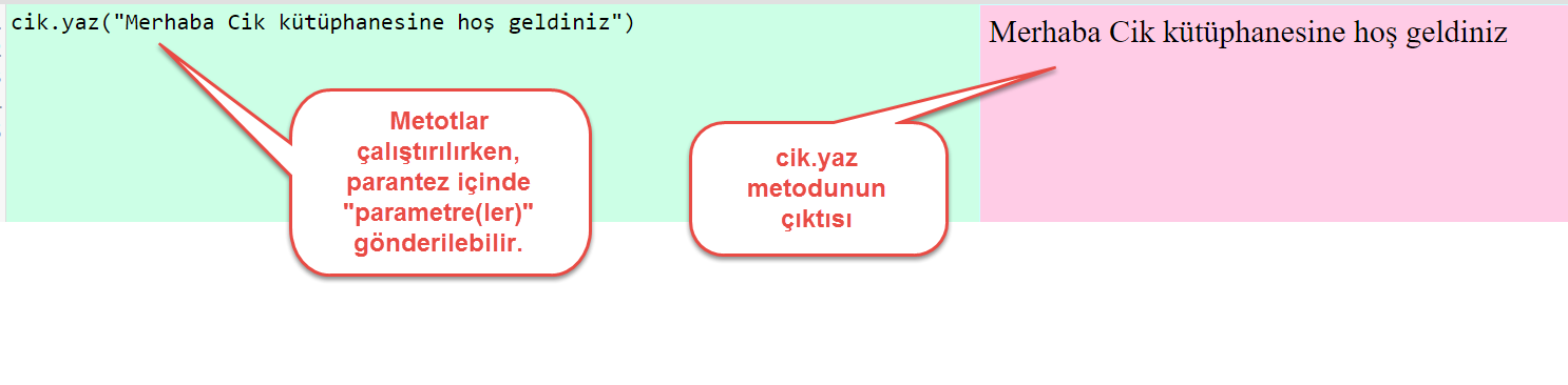 Metod: Koşulun olumlanması durumunda çalıştırılacak CiK Metodu (çift tırnak içinde yazılır) cik.yardım()