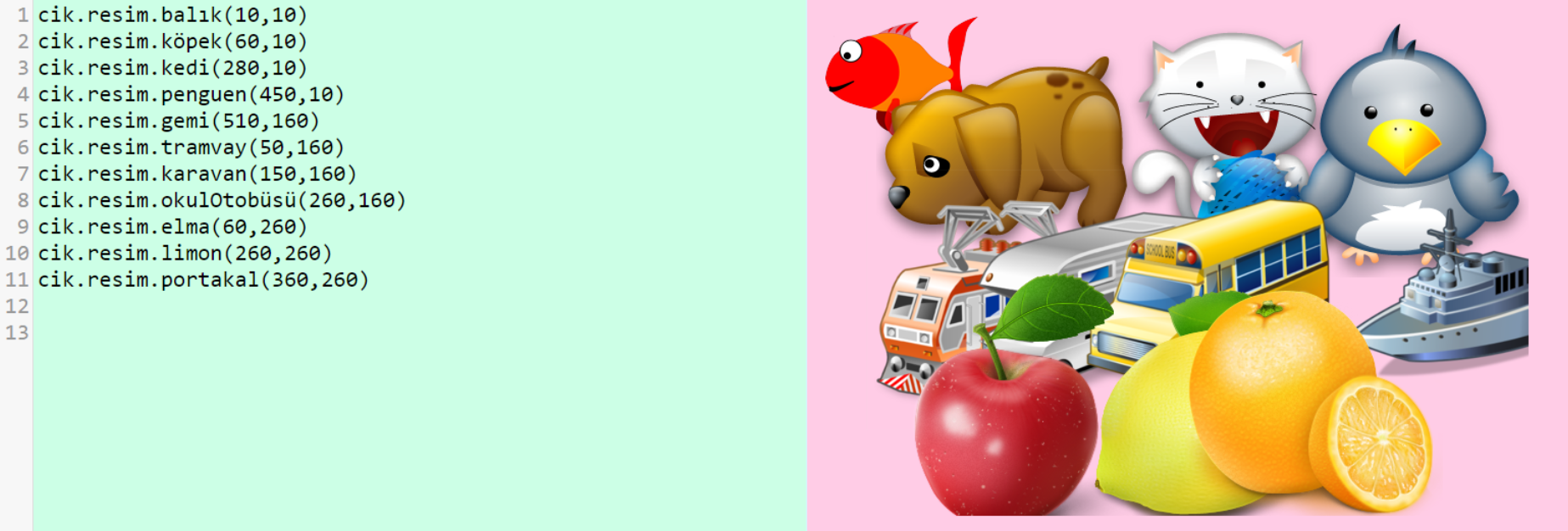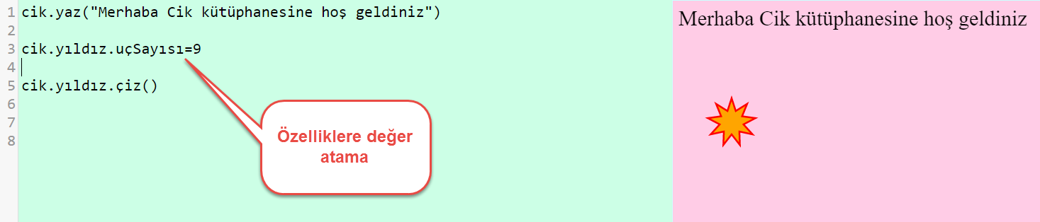 CiK kütüphanesi "dikdörtgen", "daire", "çokgen", "yıldız" gibi bir tanım nesnelerden oluşmuştur.