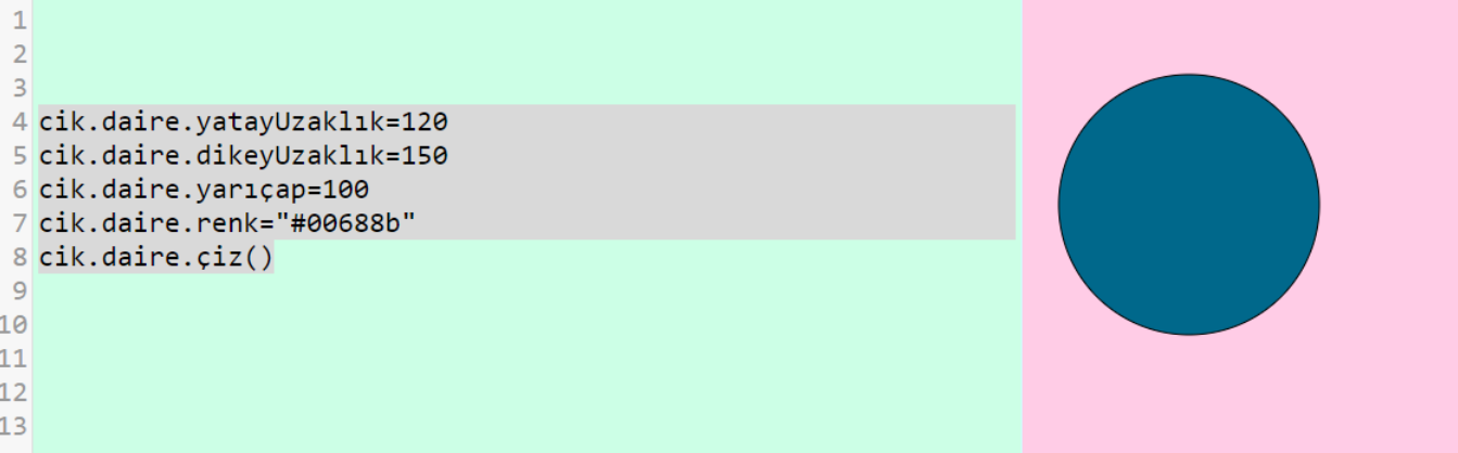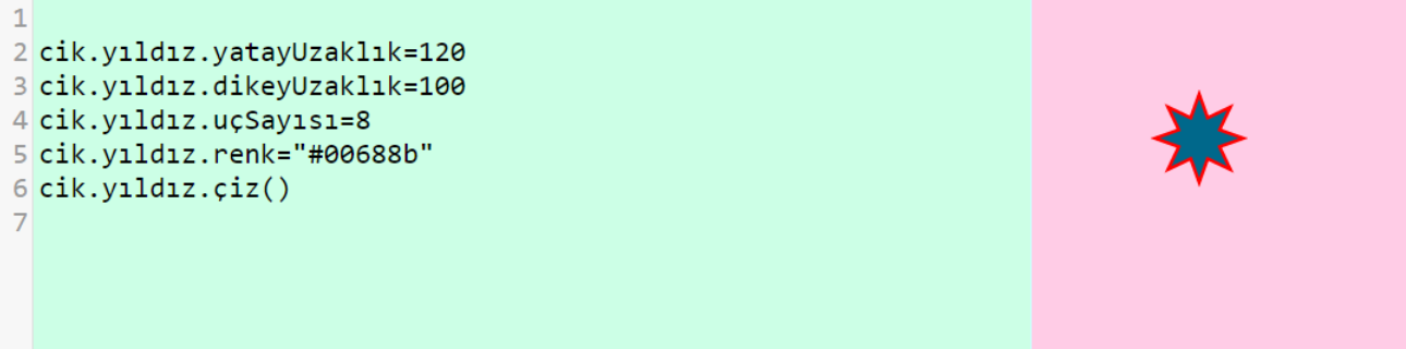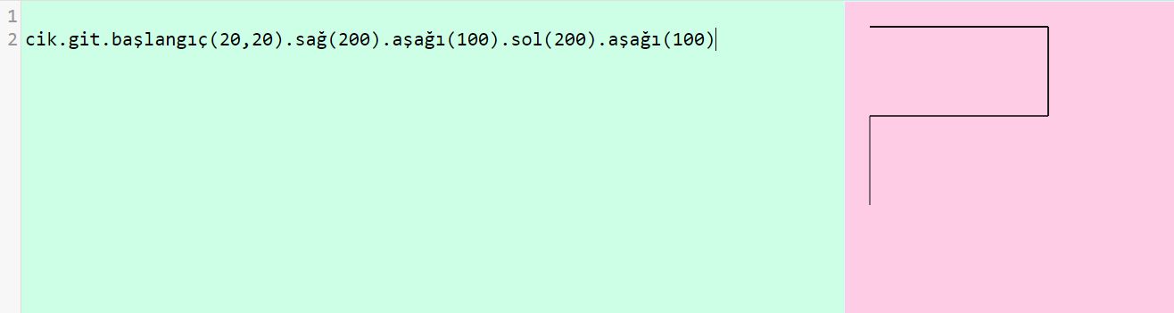 Yukarıdaki çizim metotlarını noktasal notasyonla zincirleme yazarak, kompleks çizimler oluşturabilirsiniz: