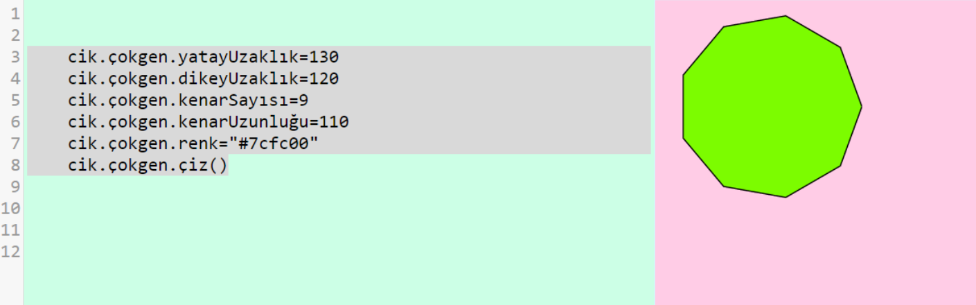 Çokgen Nesnesinin Tanımlı (Default) Kullanımı Çokgen Nesnesinin Özellikleri ve Metodu